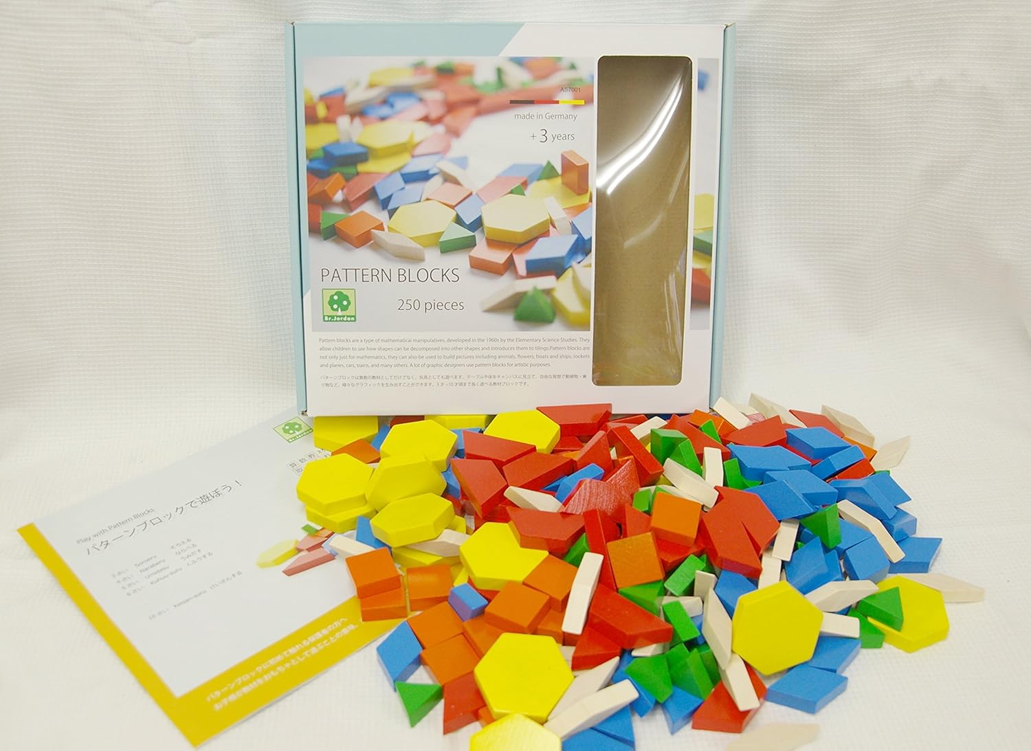 正方形、正三角形、正六角形、台形、2種類のひし形と6種類の形をしたパターンブロックです。